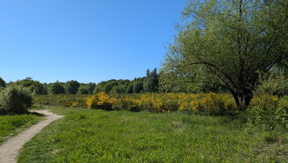 Ich laufe gern auf den schmalen Pfaden, die sich durch sandige Böden und lichte Kiefernwälder schlängeln. Und der Ginster blüht so schön gelb und leuchtet wie kleine Sonnen